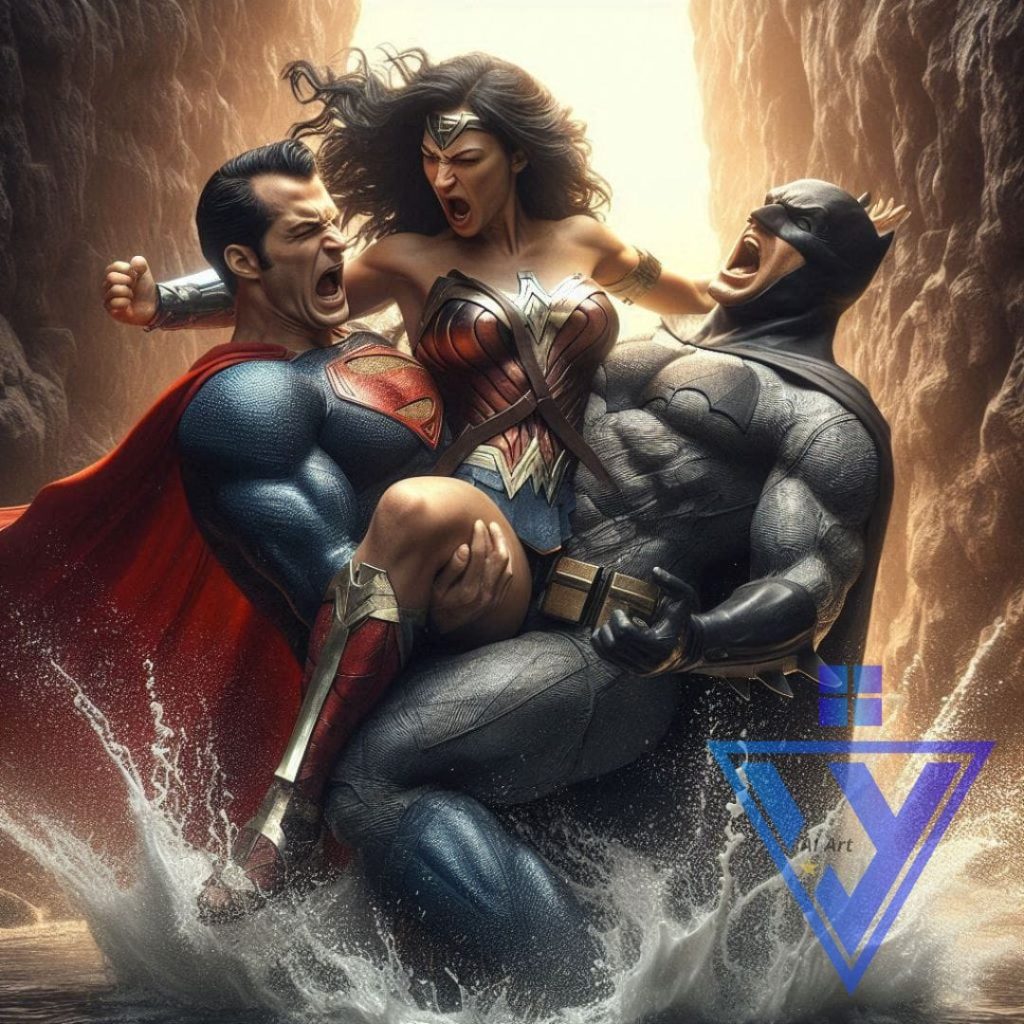 Wonder Woman, az Amazon harcos, ragyogó szépségével és határozott kisugárzásával lépett be a szobába. Fekete bőrszoknyája és feszes topja kiemelte alakját, és ahogy az ajtón belépett, mindkét férfi szíve hevesebben kezdett el verni. Superman, a szupererejével és védelmező természetével, már régóta elismerte, hogy Wonder Woman az egyik legvonzóbb nő az életében. Batman, akinek a sötétsége mögött érzékeny lélek húzódott, szintén érezte a feszültséget a levegőben.