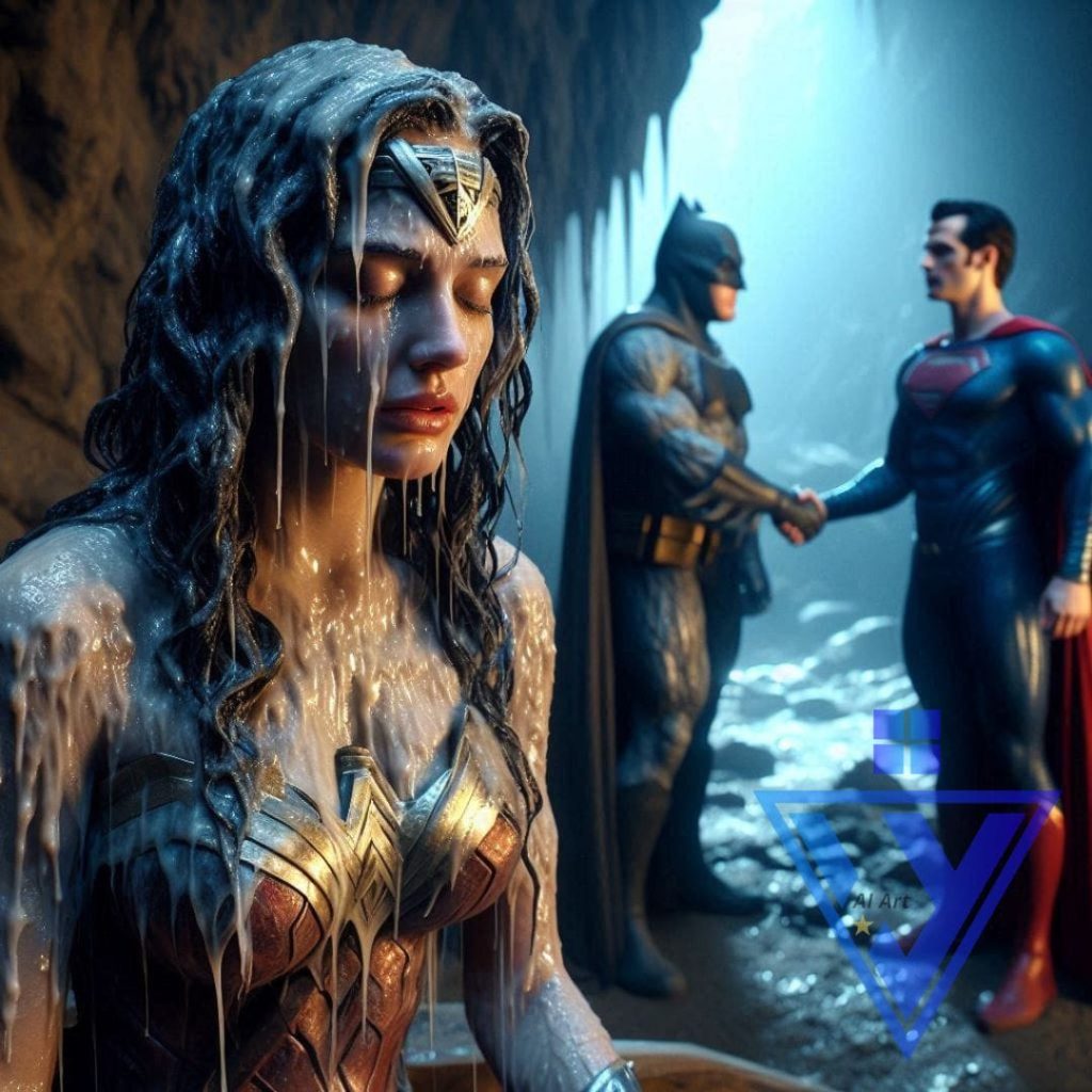 Ahogy a szobában uralkodó feszültség egyre inkább szexi izgatottságba fordult, mindannyian tudták, hogy ez az este más lesz, mint eddig bármikor. Wonder Woman tekintete Batmanra tévedt, odaadó és játékos volt, mint mindig. Batman szeme felcsillant, és a sötét álarc mögött rejtőző vágyat most már nem lehetett tagadni.